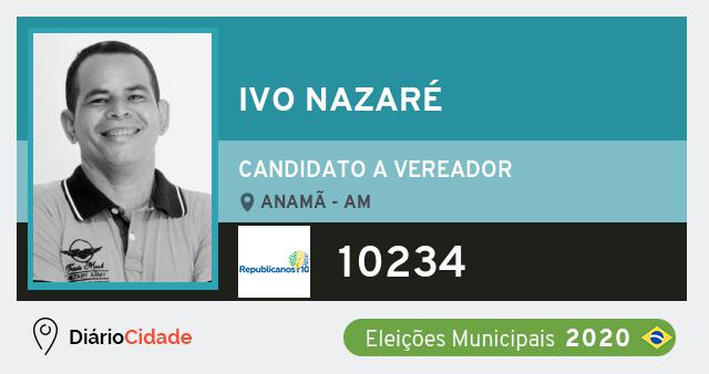 EleitoIvo Nazaré do Nascimento foi candidato a Vereador em Anamã-AM nas Eleições 2020 pelo REPUBLICANOS (Republicanos). Natural de Anamã - AM, Ivo Nazaré do Nascimento tem 52 anos de idade.