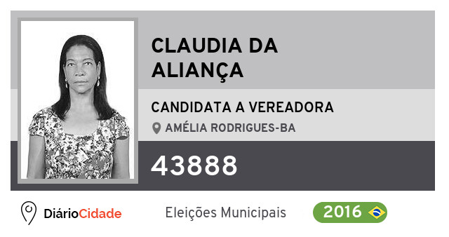 Claudia da Aliança foi candidato a Vereador em Amélia Rodrigues (BA) pelo PV nas Eleições 2016