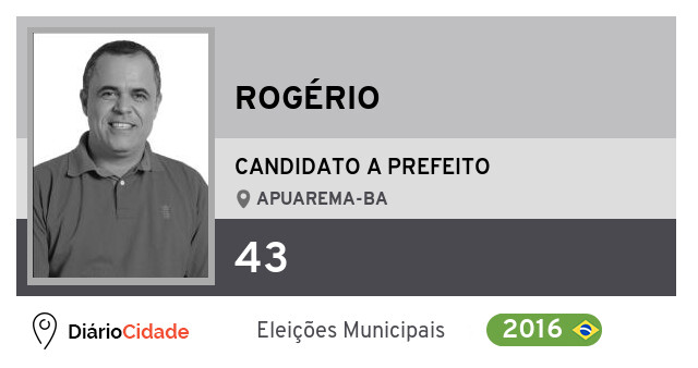 Candidato do PV para Prefeito, Rogério obteve 2.022 votos mas não foi eleito Prefeito em Apuarema nas Eleições 2016.
