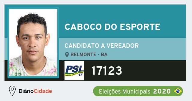 Candidato do PSL para Vereador, Caboco do Esporte obteve 7 votos mas não foi eleito Vereador em Belmonte nas Eleições 2020.