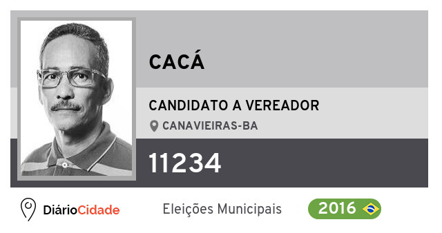 Candidato do PP para Vereador, Cacá obteve 475 votos e foi eleito Vereador em Canavieiras nas Eleições 2016.