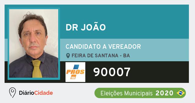 Candidato do PROS para Vereador, Dr João obteve 168 votos e está como Suplente Vereador em Feira de Santana nas Eleições 2020.