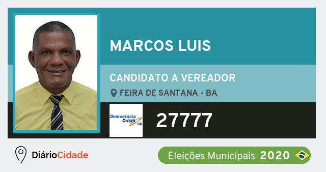 Candidato do DC para Vereador, Marcos Luis obteve 621 votos e está como Suplente Vereador em Feira de Santana nas Eleições 2020.
