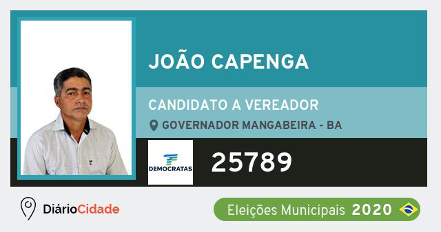 Candidato do DEM para Vereador, João Capenga obteve 91 votos e está como Suplente Vereador em Governador Mangabeira nas Eleições 2020.
