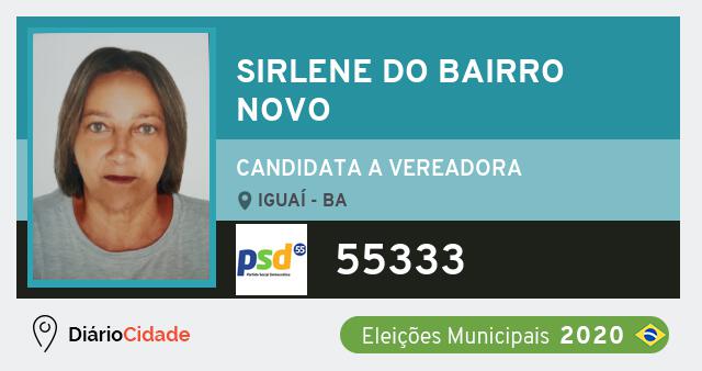 Candidata do PSD para Vereador, Sirlene do Bairro Novo obteve 23 votos e está como Suplente Vereador em Iguaí nas Eleições 2020.