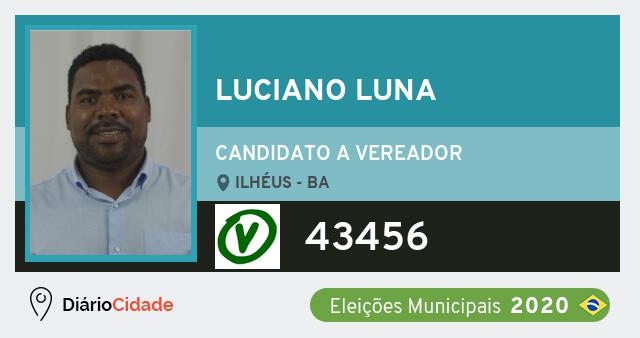 Candidato do PV para Vereador, Luciano Luna obteve 764 votos e foi eleito Vereador em Ilhéus nas Eleições 2020.