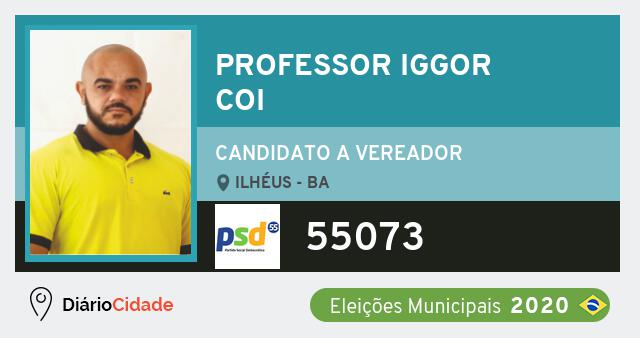 Candidato do PSD para Vereador, Professor Iggor Coi obteve 36 votos e está como Suplente Vereador em Ilhéus nas Eleições 2020.