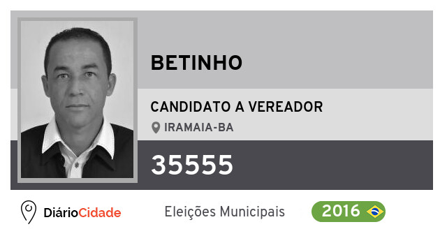 Candidato do PMB para Vereador, Betinho obteve 392 votos e foi eleito Vereador em Iramaia nas Eleições 2016.