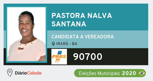 Candidata do PROS para Vereador, Pastora Nalva Santana obteve 24 votos e está como Suplente Vereador em Irará nas Eleições 2020.