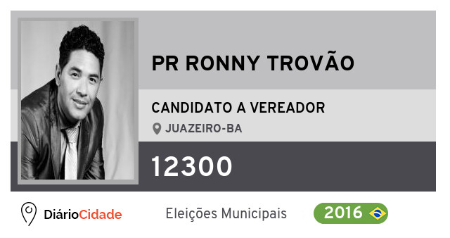 Candidato do PDT para Vereador, Pr Ronny Trovão obteve 300 votos mas não foi eleito Vereador em Juazeiro nas Eleições 2016.