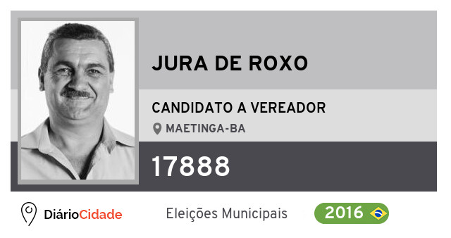 Candidato do PSL para Vereador, Jura de Roxo obteve 144 votos mas não foi eleito Vereador em Maetinga nas Eleições 2016.