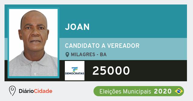 Joan foi candidato a Vereador em Milagres (BA) pelo DEM nas Eleições 2020