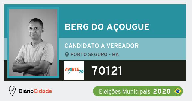 Candidato do AVANTE para Vereador, Berg do Açougue obteve 225 votos e está como Suplente Vereador em Porto Seguro nas Eleições 2020.
