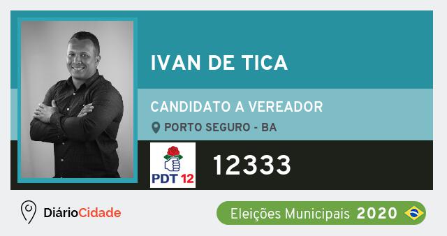 Candidato do PDT para Vereador, Ivan de Tica obteve 110 votos mas não foi eleito Vereador em Porto Seguro nas Eleições 2020.