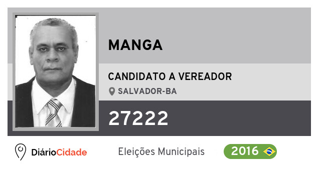 Manga foi candidato a Vereador em Salvador (BA) pelo PSDC nas Eleições 2016