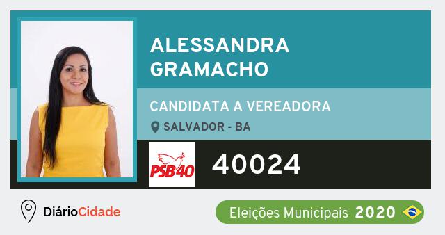 Candidata do PSB para Vereador, Alessandra Gramacho obteve 67 votos e está como Vereador em Salvador nas Eleições 2020.