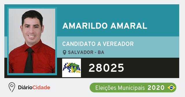 Candidato do PRTB para Vereador, Amarildo Amaral obteve 59 votos e está como Vereador em Salvador nas Eleições 2020.