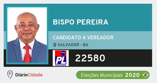 Candidato do PL para Vereador, Bispo Pereira obteve 576 votos e está como Vereador em Salvador nas Eleições 2020.