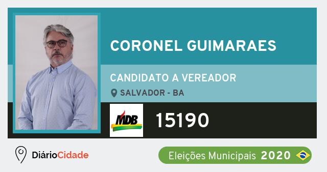 Candidato do MDB para Vereador, Coronel Guimaraes obteve 604 votos e está como Vereador em Salvador nas Eleições 2020.
