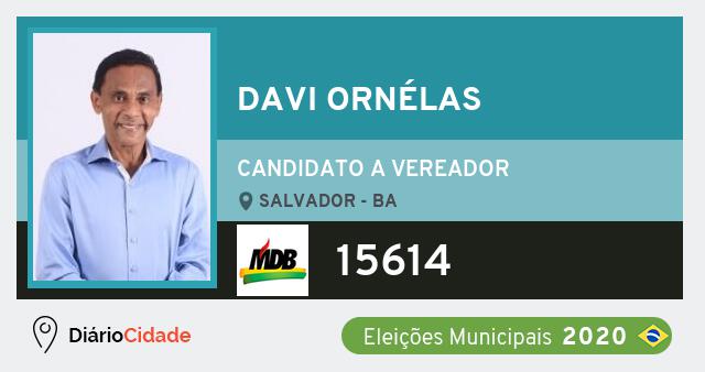 Candidato do MDB para Vereador, Davi Ornélas obteve 156 votos e está como Vereador em Salvador nas Eleições 2020.