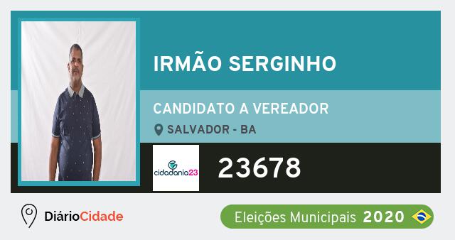Candidato do CIDADANIA para Vereador, Irmão Serginho obteve 1775 votos e está como Vereador em Salvador nas Eleições 2020.