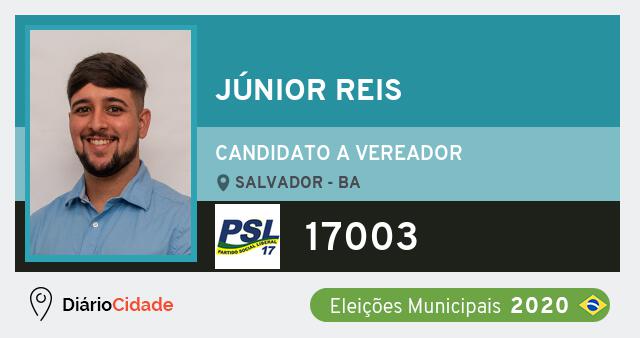 Candidato do PSL para Vereador, Júnior Reis obteve 443 votos e está como Vereador em Salvador nas Eleições 2020.