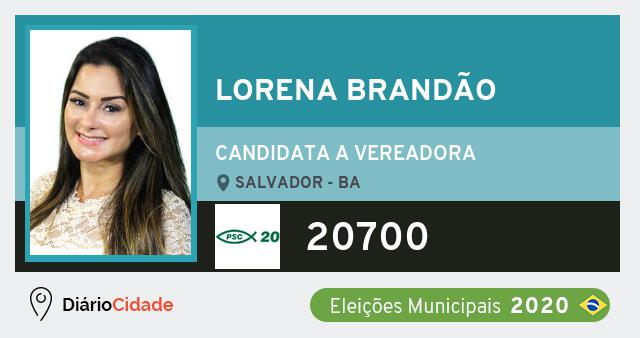 Candidata do PSC para Vereador, Lorena Brandão obteve 5606 votos e está como Vereador em Salvador nas Eleições 2020.