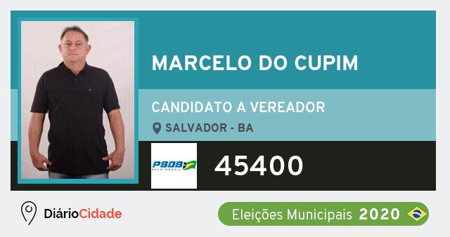 Candidato do PSDB para Vereador, Marcelo do Cupim obteve 310 votos e está como Vereador em Salvador nas Eleições 2020.