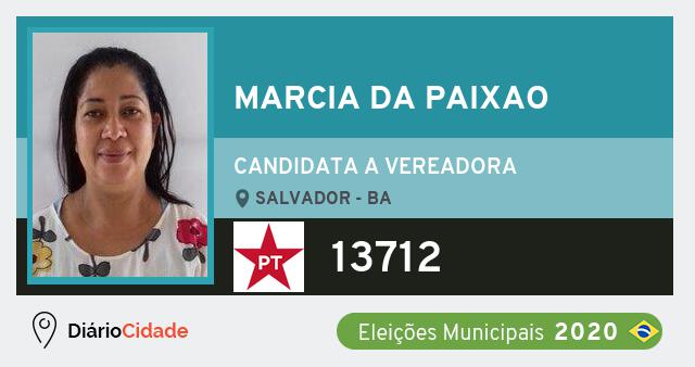 Candidata do PT para Vereador, Marcia da Paixao obteve 253 votos e está como Vereador em Salvador nas Eleições 2020.