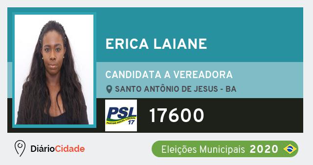 Candidata do PSL para Vereador, Erica Laiane obteve 2 votos mas não foi eleito Vereador em Santo Antônio de Jesus nas Eleições 2020.
