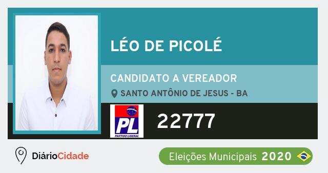 Candidato do PL para Vereador, Léo de Picolé obteve 153 votos e está como Suplente Vereador em Santo Antônio de Jesus nas Eleições 2020.