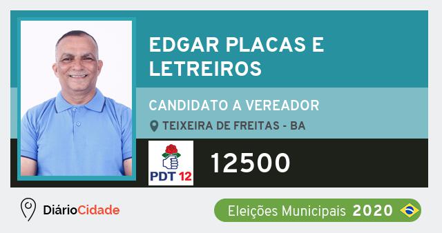 Candidato do PDT para Vereador, Edgar Placas e Letreiros obteve 44 votos e está como Suplente Vereador em Teixeira de Freitas nas Eleições 2020.