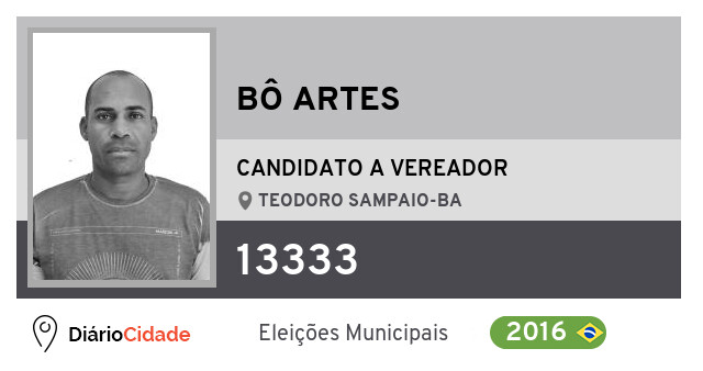 Candidato do PT para Vereador, Bô Artes obteve 46 votos mas não foi eleito Vereador em Teodoro Sampaio nas Eleições 2016.