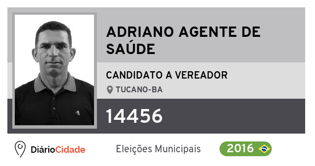 Candidato do PTB para Vereador, Adriano Agente de Saúde obteve 40 votos mas não foi eleito Vereador em Tucano nas Eleições 2016.