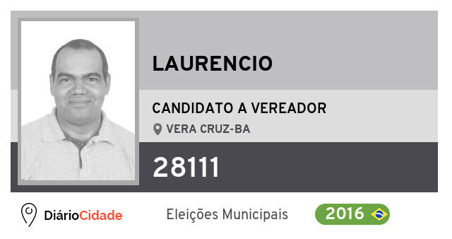 Laurencio foi candidato a Vereador em Vera Cruz (BA) pelo PRTB nas Eleições 2016