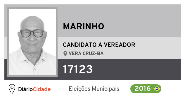 Candidato do PSL para Vereador, Marinho obteve 279 votos mas não foi eleito Vereador em Vera Cruz nas Eleições 2016.