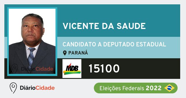 Candidato a Deputado Estadual Vicente da Saude 15100