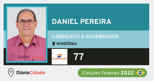 Não eleitoDaniel Pereira é candidato a Governador de Rondônia nas Eleições 2022 pelo SOLIDARIEDADE (Solidariedade). Natural de Luiziana - PR, Daniel Pereira tem 57 anos.
