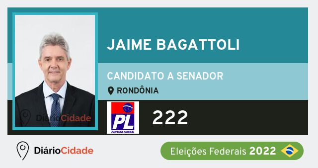 EleitoJaime Maximino Bagattoli é candidato a Senador de Rondônia nas Eleições 2022 pelo PL (Partido Liberal). Natural de Presidente Getúlio - SC, Jaime Maximino Bagattoli tem 61 anos.