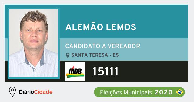 Candidato do MDB para Vereador, Alemão Lemos obteve 268 votos e está como Suplente Vereador em Santa Teresa nas Eleições 2020.