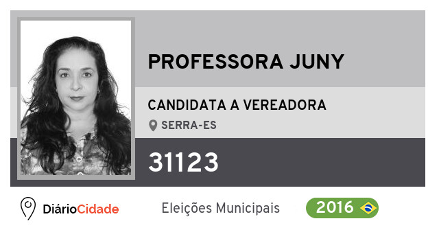 Candidata do PHS para Vereador, Professora Juny obteve 823 votos mas não foi eleito Vereador em Serra nas Eleições 2016.