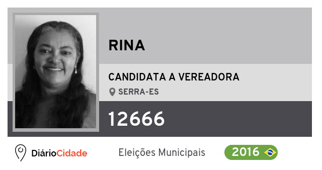 Candidata do PDT para Vereador, Rina obteve 49 votos mas não foi eleito Vereador em Serra nas Eleições 2016.