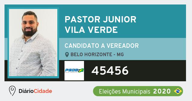 Candidato do PSDB para Vereador, Pastor Junior Vila Verde obteve 342 votos e está como Suplente Vereador em Belo Horizonte nas Eleições 2020.
