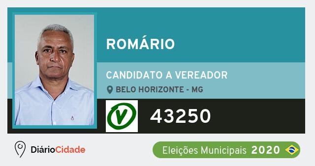 Candidato do PV para Vereador, Romário obteve 238 votos mas não foi eleito Vereador em Belo Horizonte nas Eleições 2020.