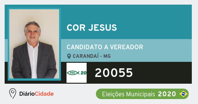 Candidato do PSC para Vereador, Cor Jesus obteve 614 votos e foi eleito Vereador em Carandaí nas Eleições 2020.