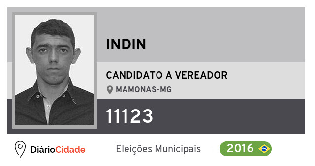 Candidato do PP para Vereador, Indin obteve 363 votos e foi eleito Vereador em Mamonas nas Eleições 2016.