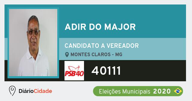 Candidato do PSB para Vereador, Adir do Major obteve 67 votos mas não foi eleito Vereador em Montes Claros nas Eleições 2020.