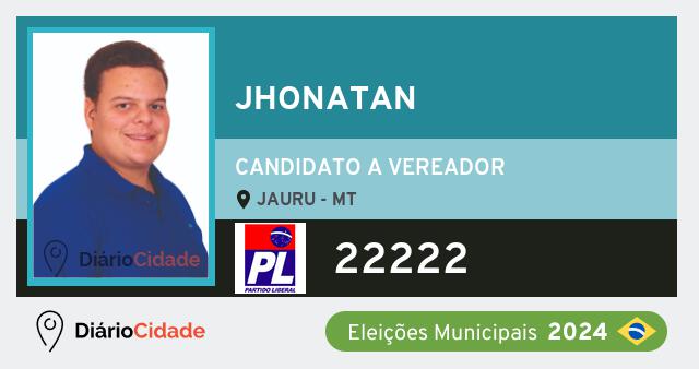 Jhonatan é candidato a Vereador em Jauru (MT), pelo PL, nas Eleições 2024