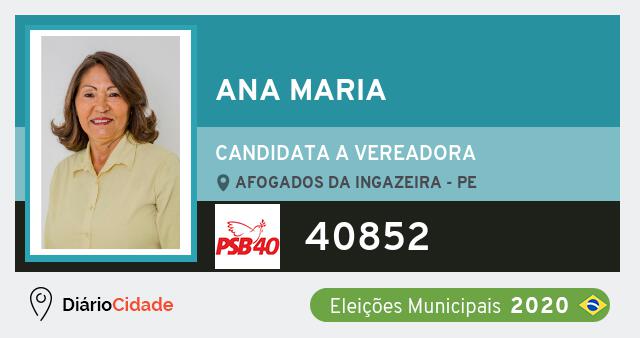 Candidata do PSB para Vereador, Ana Maria obteve 38 votos e está como Suplente Vereador em Afogados da Ingazeira nas Eleições 2020.