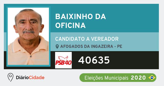 Candidato do PSB para Vereador, Baixinho da Oficina obteve 32 votos e está como Suplente Vereador em Afogados da Ingazeira nas Eleições 2020.